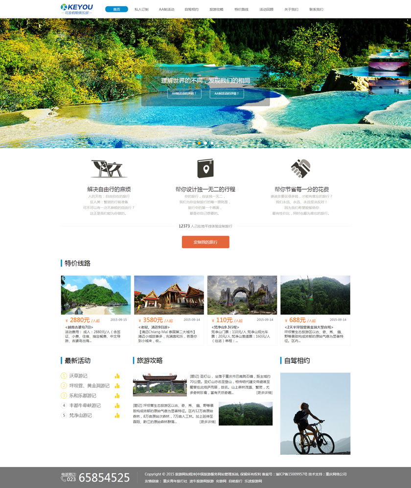 Project Description 6人游旅行网隶属于北京六人游国际旅行社有限公司。打造“为爱出行”:专为家庭,朋友,情侣间的旅行,提供私家小团精品游。打造高品质的旅行产品,解决传统跟团游和自由行存在的问题,将旅行服务做到臻善臻美。 Official website address 三明http://www.keyoujq.com I want to share